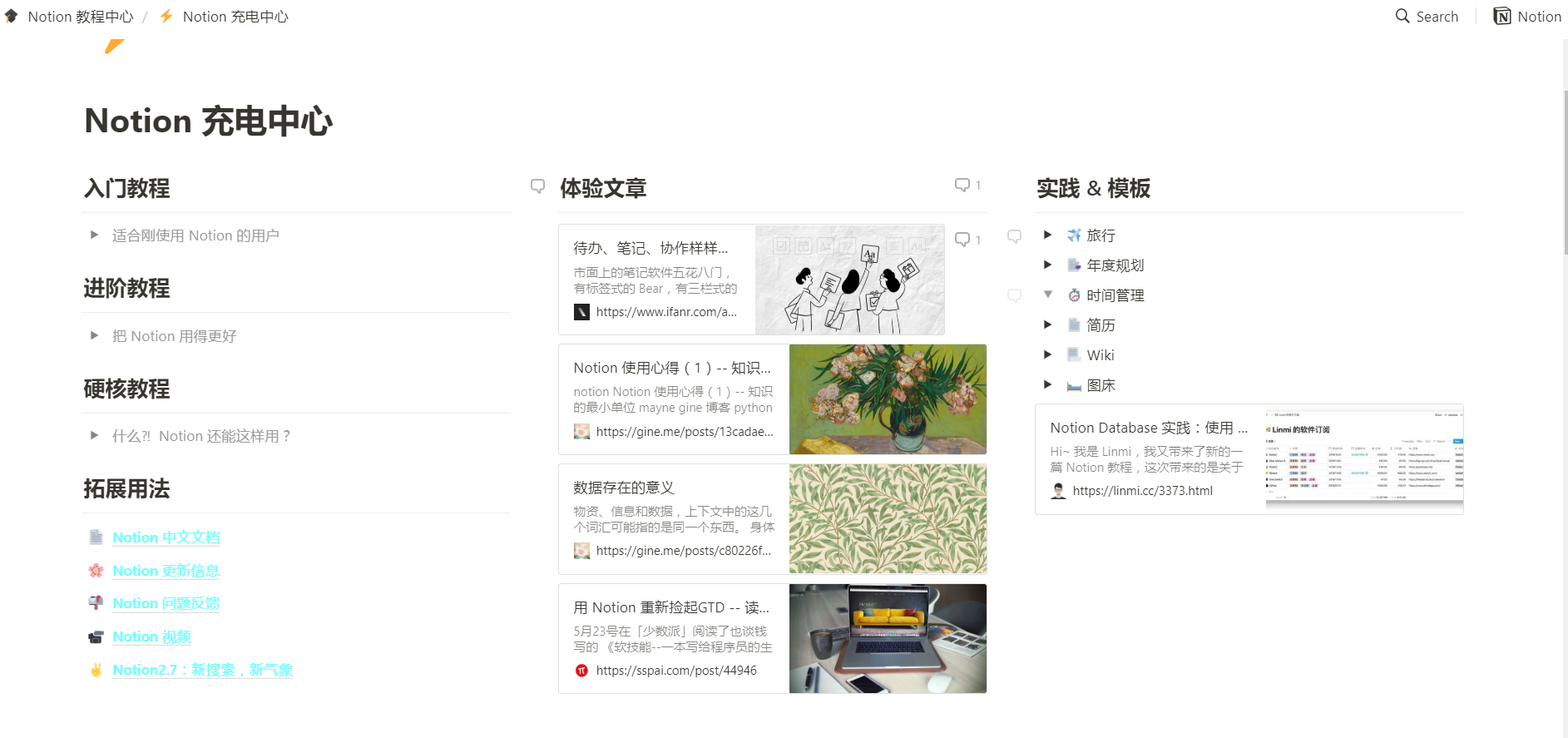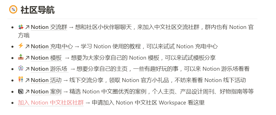 - 主要包含一些Notion应用资源和Notion社区等,熟悉Notion的话应该很容易上手的。